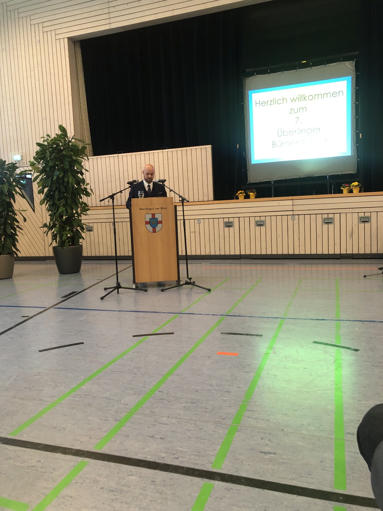 Ortsvorsteher Thorsten Ehinger und der Überlinger Ortschaftsrat luden am Sonntag zum traditionellen Überlinger Bürgerdialog in die Riedblickhalle. Zahlreiche Besucher waren gekommen, um die Ansprachen des Ortsvorstehers, von Frau Britta Panzer, Leiterin des Stadtarchivs Singen und des Oberbürgermeisters Bernd :Häusler zu hören.